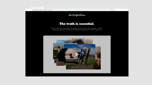 A campaign about how The New York Times’ journalism can help us through every part of our lives. A visual poem of sorts, built from the Times' journalism, it celebrates the relationship we all have with the journalists and their writing. The campaign looks to show how The truth is essential in guiding us through the change, chaos and unpredictability of life right now.
